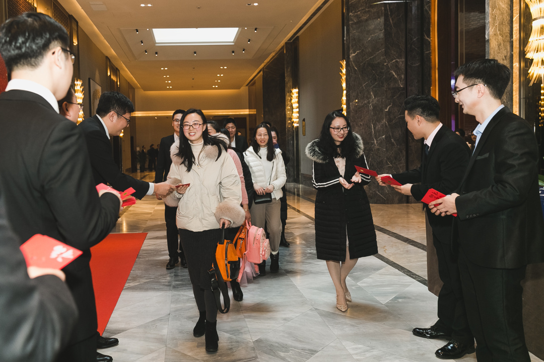 下午15點,特邀嘉賓、欣威員工及員工家屬陸續進場。大家身著禮服西裝,簽字、拍照、領紅包!