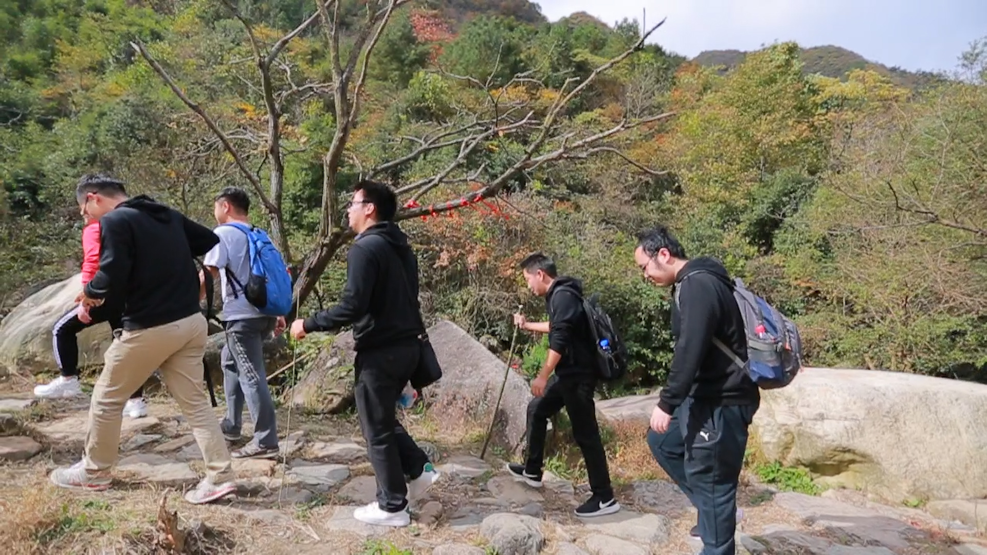 翌日清晨,欣威小伙伴們齊齊站在吳越古道山腳下,揮舞著彩色的旗幟,整裝待發,穿越吳越古道,突破自我,挑戰不可能!