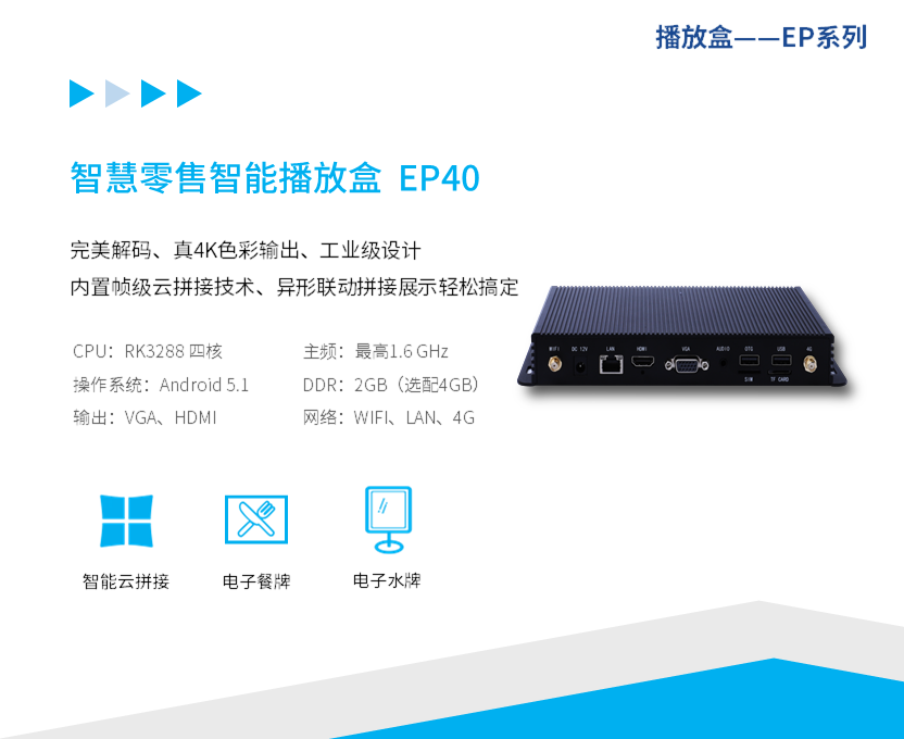 從基于物聯網的智能數字標牌系統和大數據管理平臺,服務機器人核心系統,到基于語音、視覺和手勢交互的智能家電核心系統和大數據管理平臺,我們秉承穩定、可靠、專業和專注的宗旨理念,打造覆蓋硬件、軟件、平臺、AI的生態產品服務矩陣,為行業用戶不斷打造智能顯示終端領域全棧式解決方案