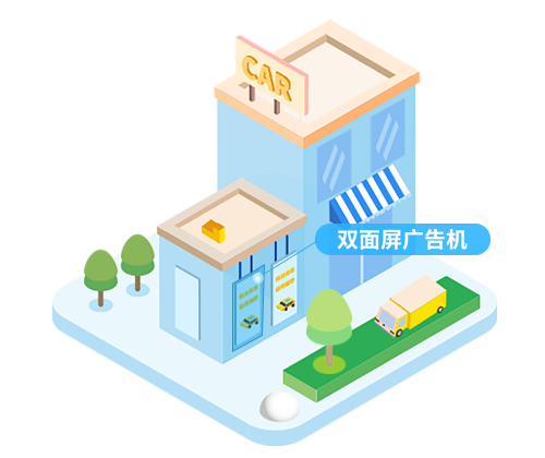 放置于櫥窗區(qū)域,一塊主板驅(qū)動兩塊屏幕,支持雙屏異顯、雙屏同顯,對外屏幕多圖層動態(tài)海報吸引顧客注意、勾起消費欲望;對內(nèi)屏幕補充展示車輛或活動信息。
